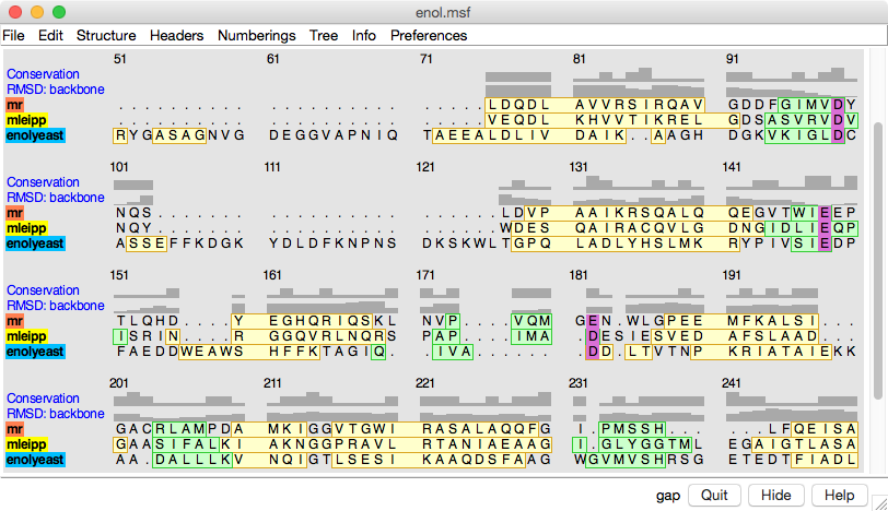 The Multalign Viewer tool displays individual sequences and multiple sequence alignments. Sequence alignments can be read from external files (several formats) or created by other tools in Chimera. Structures opened in Chimera are automatically associated with sufficiently similar sequences in the alignment. After association,