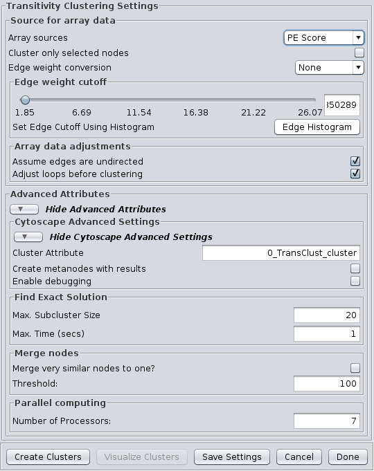 - clusteringThresh=1X10-15: Weak EdgeWeight Pruning Threshold