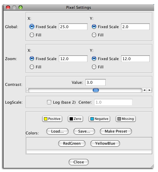 - Enable both Log2 Scaling and Unit Variance and set Median Centering to Genes and Sum of Squares=1 to Both.