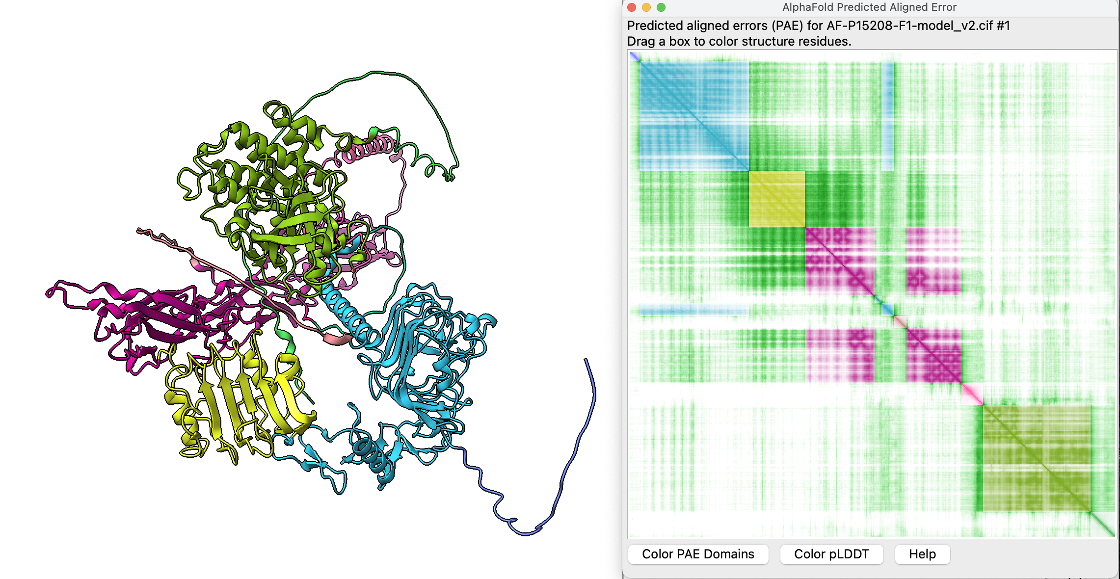 I attached an example of a PAE plot with structure colors.