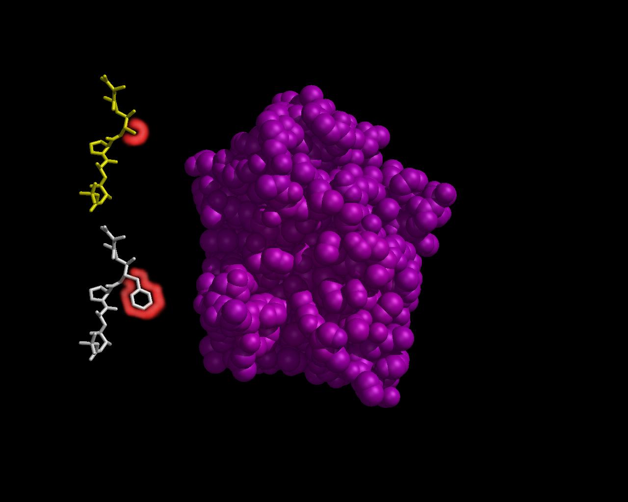 Paint programs can be used to emphasize certain aspects of an image, such as the difference in the sizes of inhibitors in this image of Alpha Lytic Protease and two substrates.