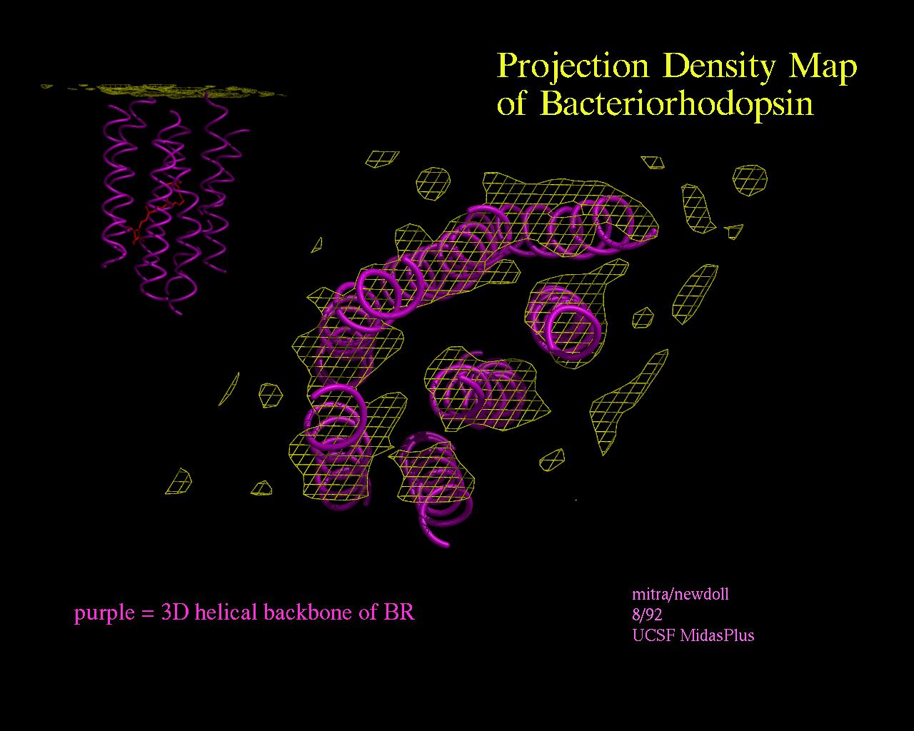 This image shows a model of E. coli Bacteriorhodopsin superimposed onto a density map.
