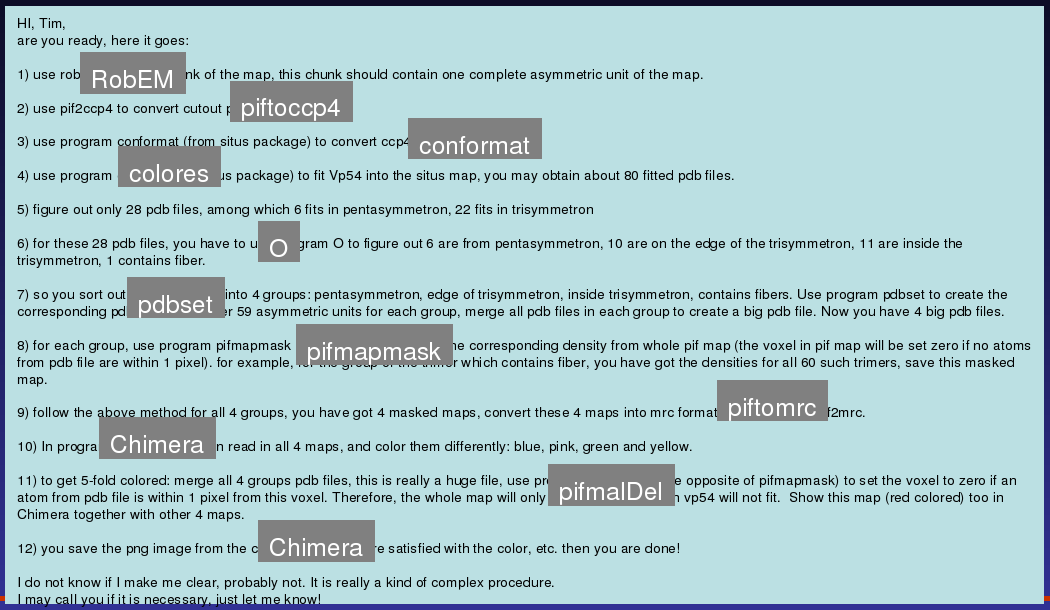 -- several in-house utilities (RobEM, pif*), Situs, O, and Chimera.