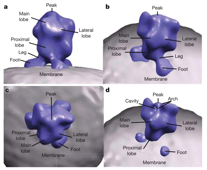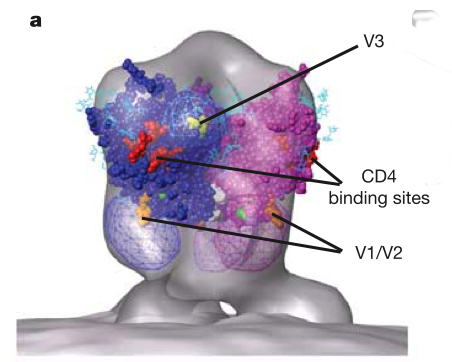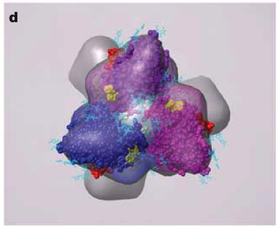 June 2006 EM tomography example fitting HIV gp120/gp41 spikes using Chimera.