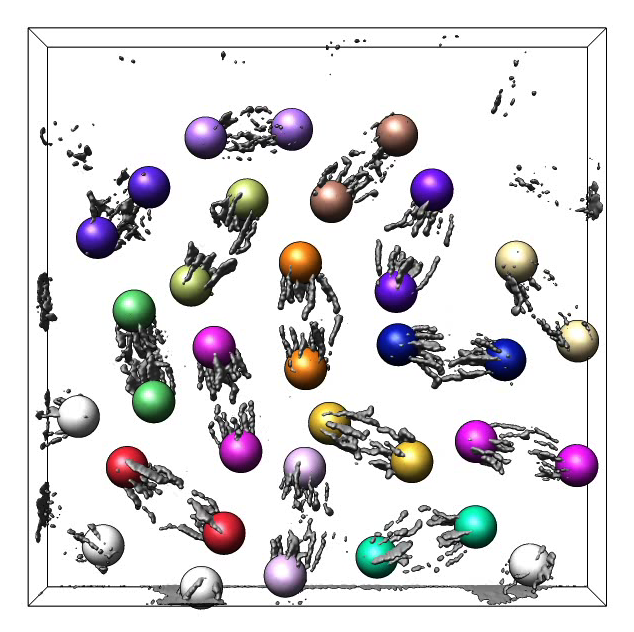 Figure 4. Volume time series showing Drosophila cells undergoing mitosis. Corresponding daughter cells are tracked with colored markers.