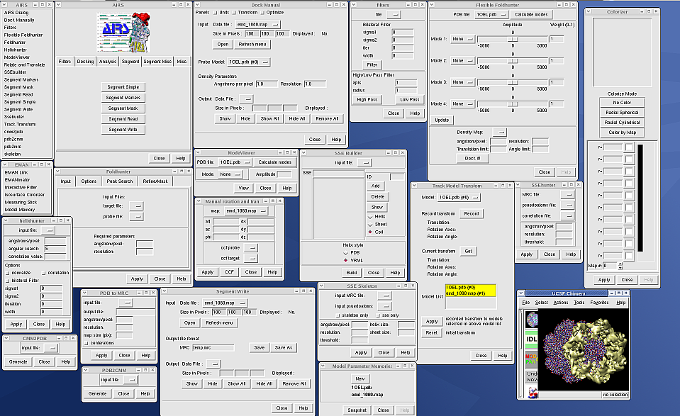 Screenshots show Chimera tools developed by Wah Chiu's lab.