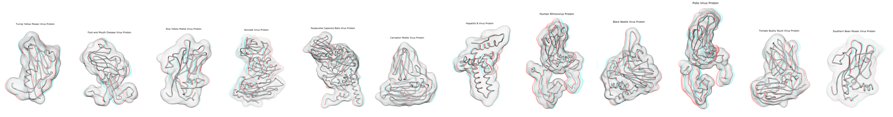 Twelve examples. Capsid images (54 Mb): pdf, html. Protein images (50 Mb): pdf, html. Genome images (9 Mb): pdf, html. Ribbon capsid images (55 Mb): pdf, html.