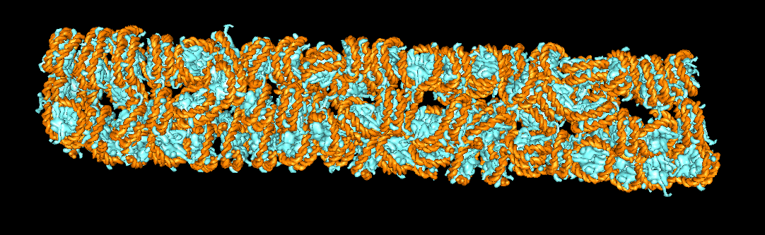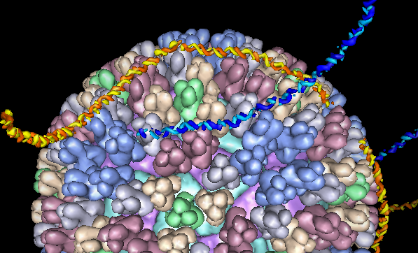 - Conceptual model of fiber with 100 nucleosomes is shown.