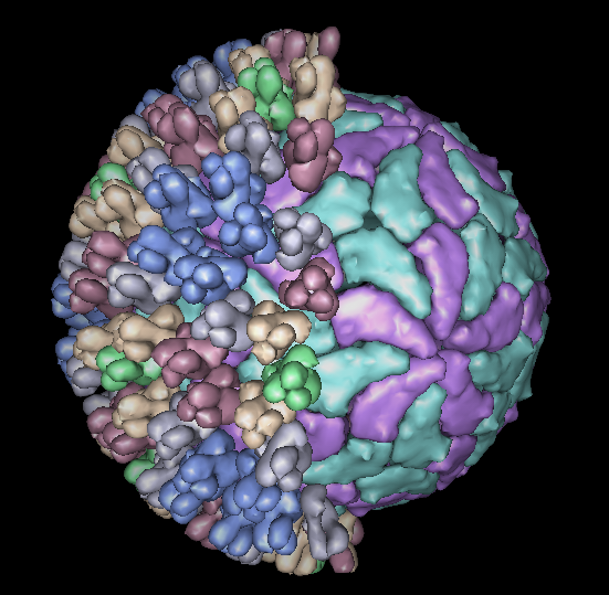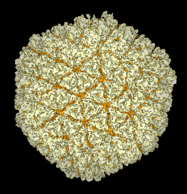 - Density map from electron cryo-microscopy of 3261 full virus particles