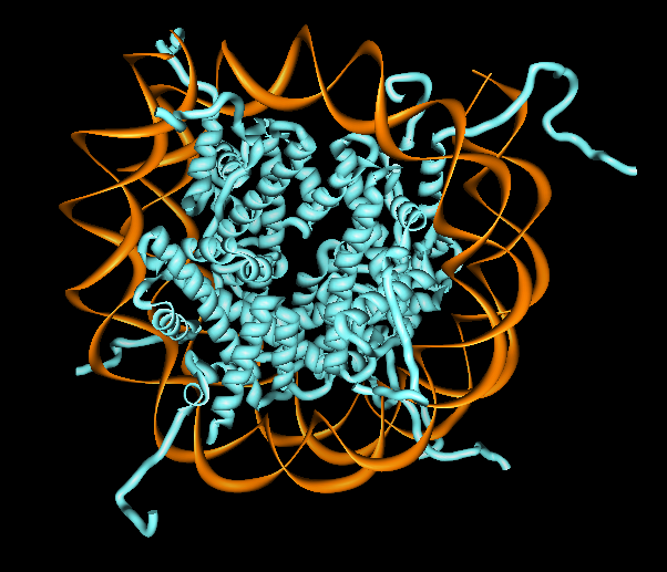 - Nucleosomes consist of a histone protein octamer wrapped with