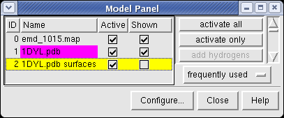Now we'll look at atomic details of the nucleocapsid. Hide the density map by clicking off the button in the Shown column of the Model Panel next to emd_1015.map.