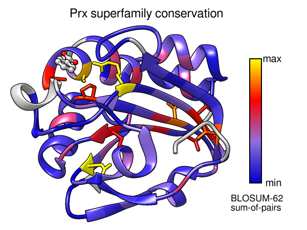 - redoxin-seed-HSDM-norm.txt - conservation calculated with the HSDM matrix, with some coloring just as an example