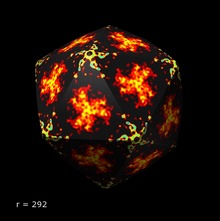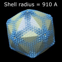 The radius of a spherical or icosahedral shell can be measured. This can be used for measuring layers of virus particles. Display the Icosahedron Surface tool with menu entry
