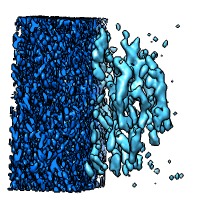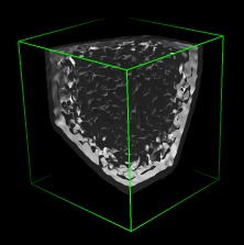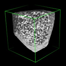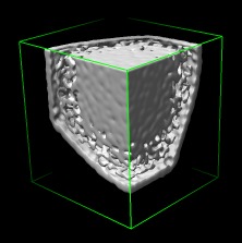 When high density extends to the boundary a data set the contour surface shows a hole, and the inside of the surface is visible. Setting the map values on the boundary of the data set to zero eliminates the holes. This is done with keyboard accelerator zb. Keyboard accelerators are turned off by default. To activate them use menu entry