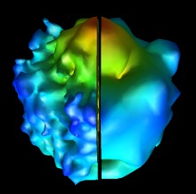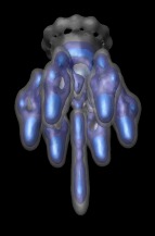 Contour surfaces with recesses can be made to look more 3-dimensional by darkening the recessed areas. If light cannot reach a deep pocket it should appear dark. The most direct way to achieve this is to shine lights on the surface from many directions and compute shadows. Chimera only has two lights and does not currently compute shadows. In some cases the same effect can be achieved using the Surface Color and Gaussian Filter tools as follows.