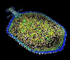 The image shows 3 contour levels of the tail assembly of phage P22. (EM database entry 1119.)