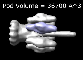 The volume enclosed by a surface can be measured. This can be used for estimating the size of proteins that would occupy that volume. Use menu entry