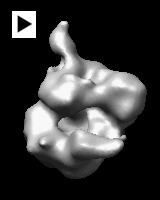This tool makes the differences between related maps visually evident but is not a reliable guide to how the structures undergo conformational changes. The example shows morphing between two RNA polymerase II conformations (EMDB 1283 and 1284).