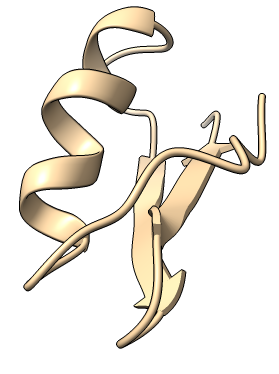 Small proteins. We have chosen a very small protein because currently the molecular dynamics residue repacking we want to demonstrate runs on the entire protein and is too slow on larger proteins. In the future this will be optimized to only run molecular dynamics on a part of the protein. If you wish to try another molecule, it will need hydrogens which can be added with the addh command. Currently only the standard 20 amino acids can be parameterized by our OpenMM molecular dynamics code.