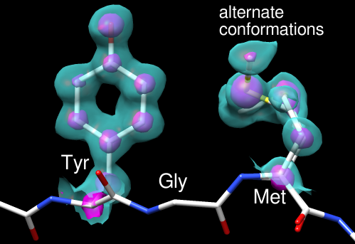 Since one goal was to show an example of alternate conformations, residues with atoms in alternate conformations were identified by labeling: