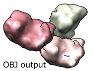 Export Surfaces in Wavefront OBJ formatExport volume contour surfaces, multiscale surfaces, molecular surfaces and others in Wavefront OBJ format for input into animation packages. Included in Chimera version 1.2485, using menu File / Export Scene.