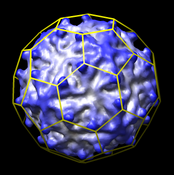 Icosahedral Cage CommandAdds hkcage command to display hexagonal mesh on an icosahedron. Illustrates arrangement of proteins on a virus capsid. Included in Chimera version 1.2456.