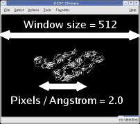 Set Magnification and Window SizeCommands to set absolute magnification in pixels per angstrom and window size in pixels. The windowsize command is included in Chimera version 1.2314 and newer.