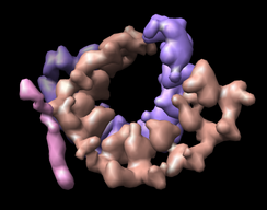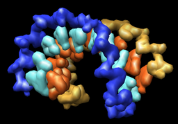 The reschains.py Python script copies the currently opened molecules putting each nucleic acid base in a separate PDB chain. The nucleic acid backbone and sugars stay in their original chains. This allows the Chimera Multiscale Models tool to create depictions where each backbone and each base is represented by a separate surface.