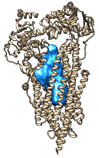 The MOLEonline server runs MOLE, a program for identifying and characterizing channels in macromolecular structures. Results include a profile of the channel radius and hydropathy, a list of residues lining the channel, and scripts for display in Chimera and other programs. The server is described in Pravda et al., Nucleic Acids Res 46:W368 (2018). The image shows results for PDB 1BL8 biological unit calculated in pore mode, displayed in Chimera. See also: bash script for visualizing HOLE output in Chimera, as described in associated posts: [011372] [011374] |