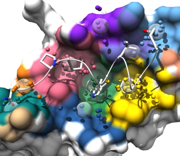 AlphaSpace is a tool for analyzing surface pockets at protein-protein interfaces. AlphaSpace generates a Chimera session file with several “scenes” for viewing the results in different ways. The program is available upon request from the authors for academic use and is described in Rooklin et al., J Chem Inf Model 55:1585 (2015). |