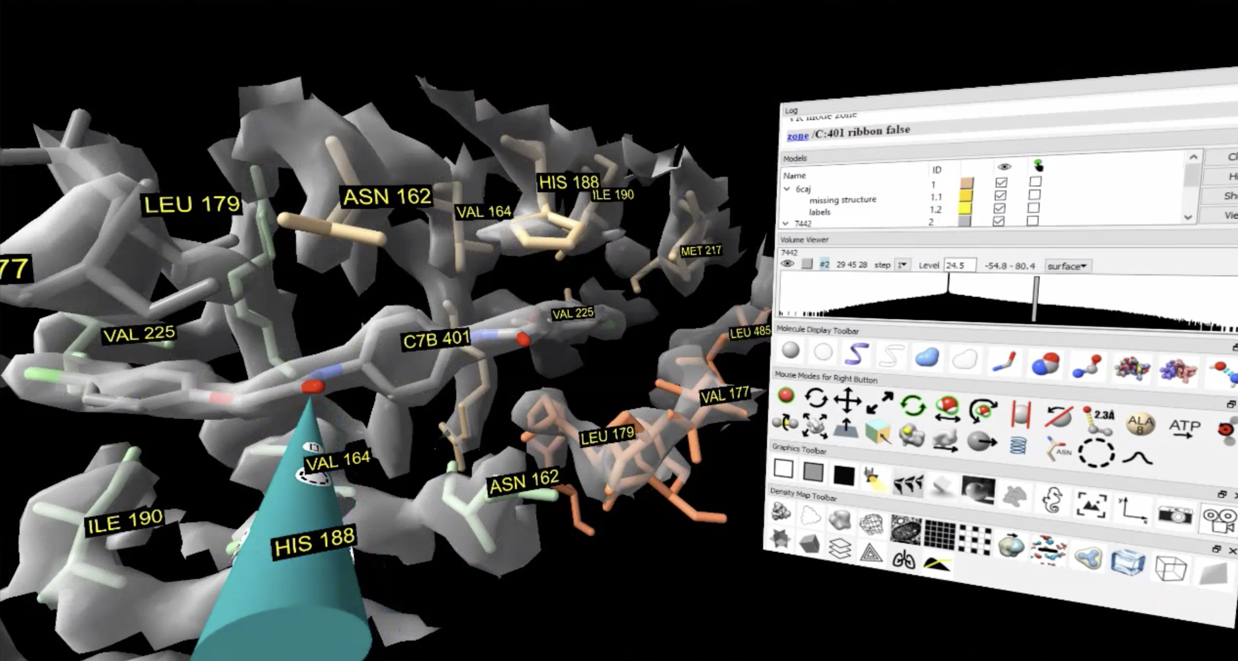Good VR uses often need precise 3D spatial perception, such as drug interactions (hydrogen bonds, hydrophobic contacst, ...) within a protein binding site.