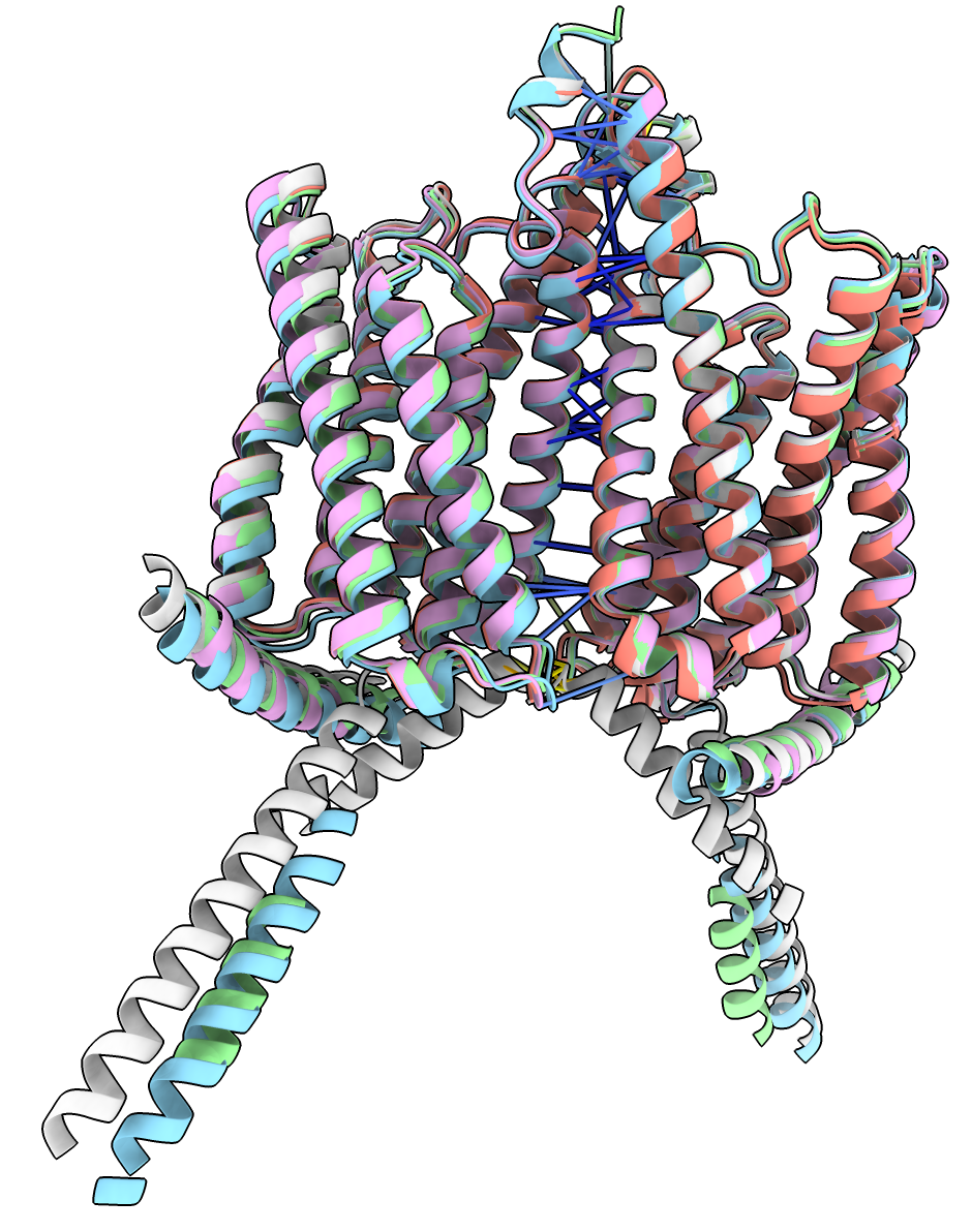 5 models superimposed. Command: matchmaker #2-5 to #1 |