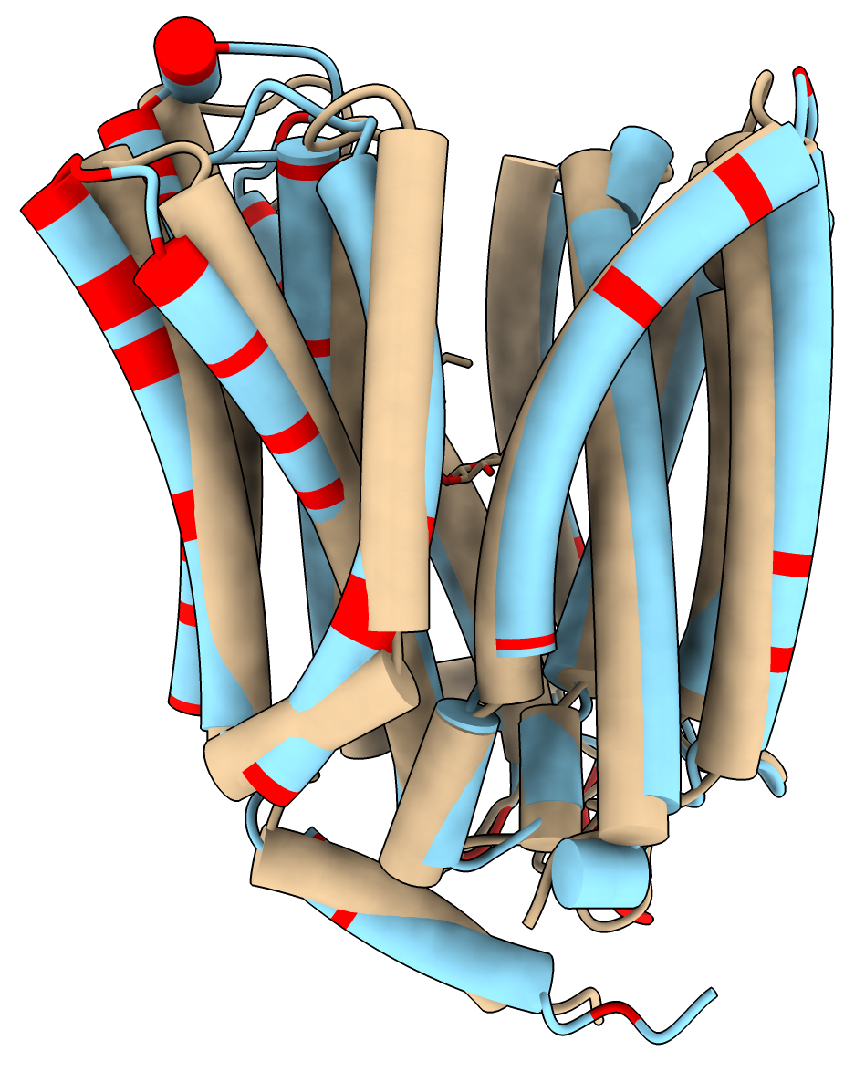 matchmaker #2 to #1 showAlignment true color #2 skyblue color #2::seq_conservation<=0 red