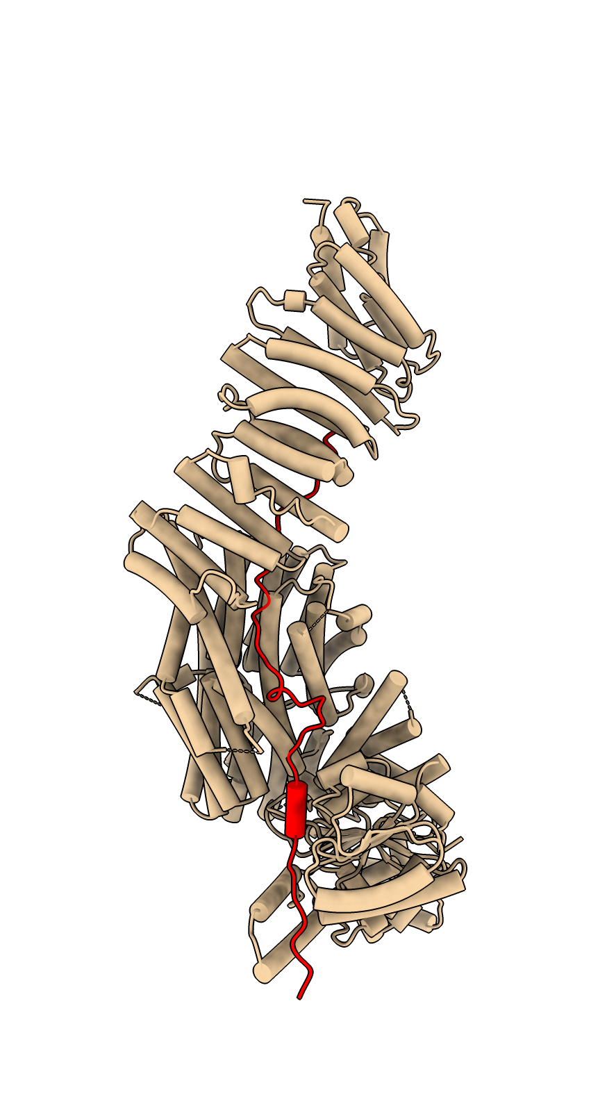Structure 7NJ1 from electron microscopy, separase brown, securin red. |