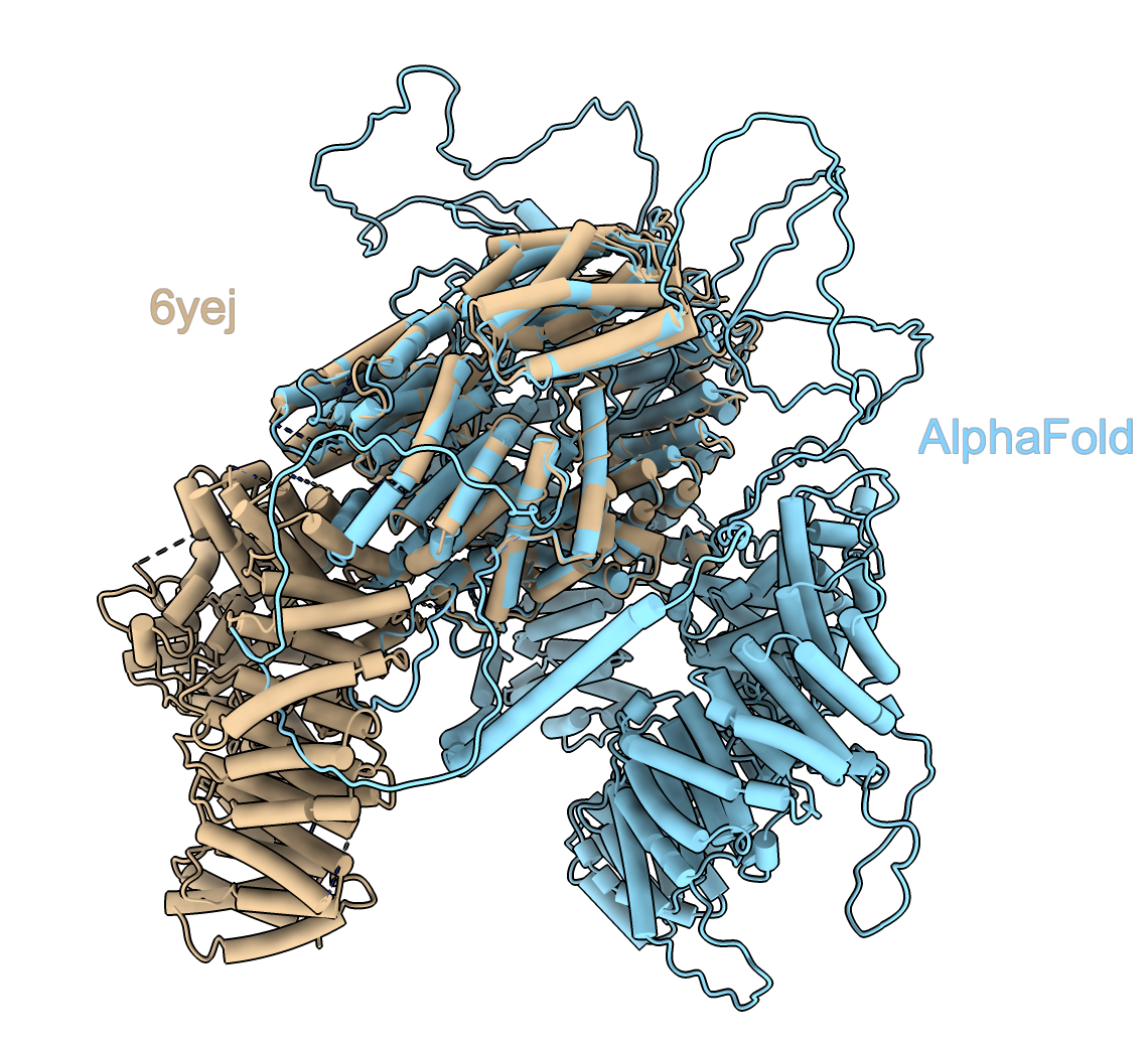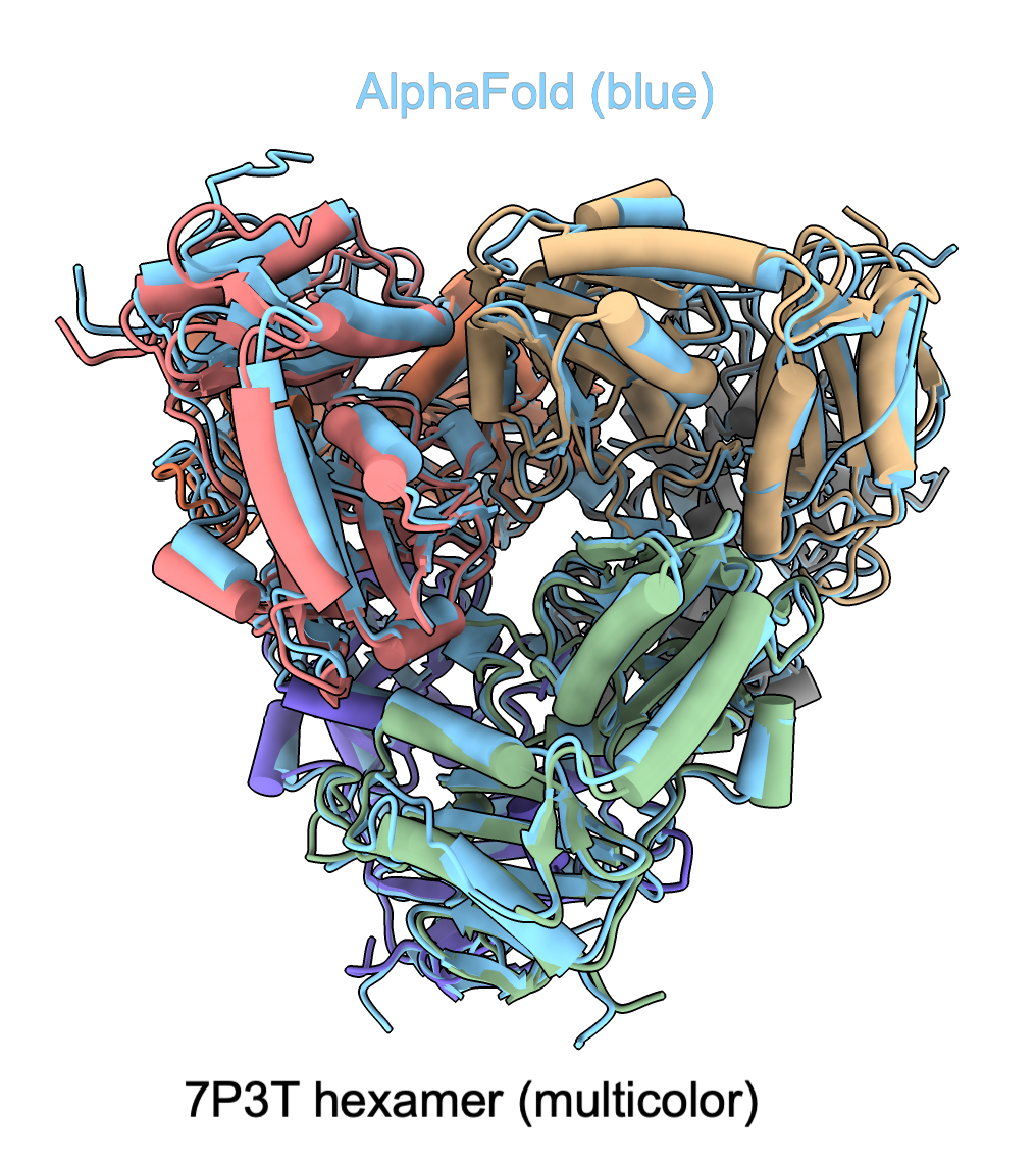 | 7E5N | 4 / 1 | 1292 | 48 | A40 | 11 | UCSF cluster | Completed with AlphaFold 2.1.1. Wrong packing. Image. |