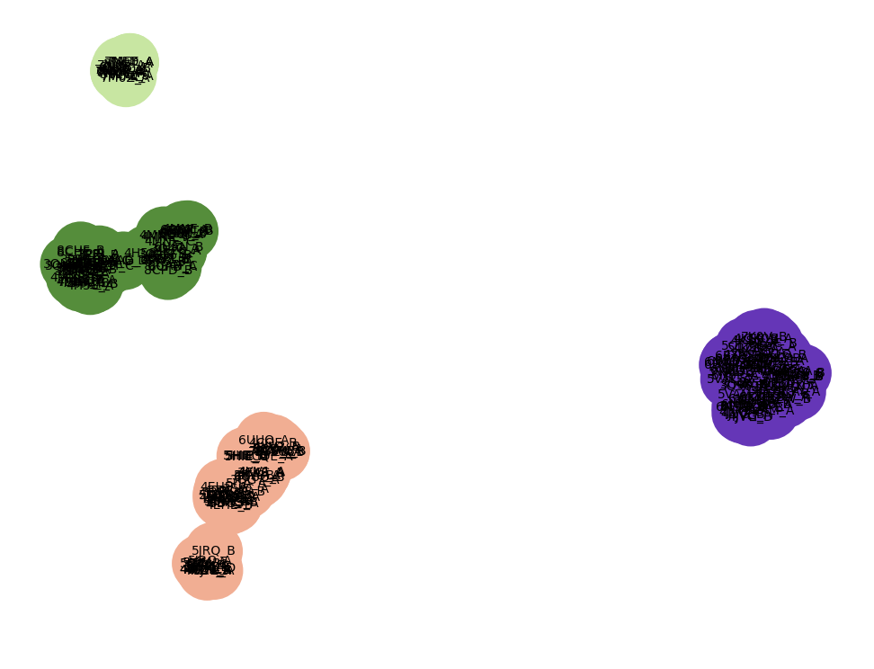 The clustering was done just at 23 selected C-alpha atoms. To see clearly which atoms were used click the plot background and choose menu entry "Show comparison atoms". To make them smaller choose "Select comparison atoms" then in the Molecule Display toolbar click "Ball stick" style and then ctrl click the graphics background to clear the selection. You can also make the ribbons transparent to more easily see the comparison atoms using command
