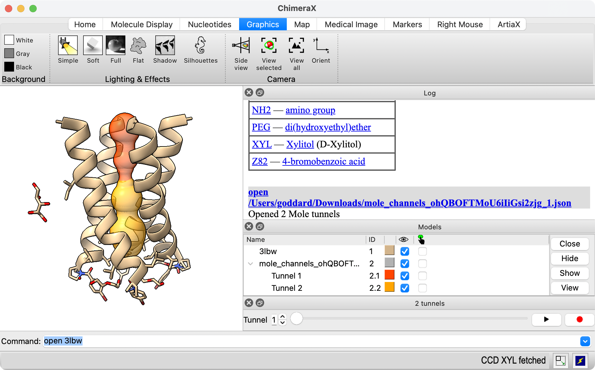 Made a Mole file reader (json) for ChimeraX to show channels computed by web server for Phil Cruz.