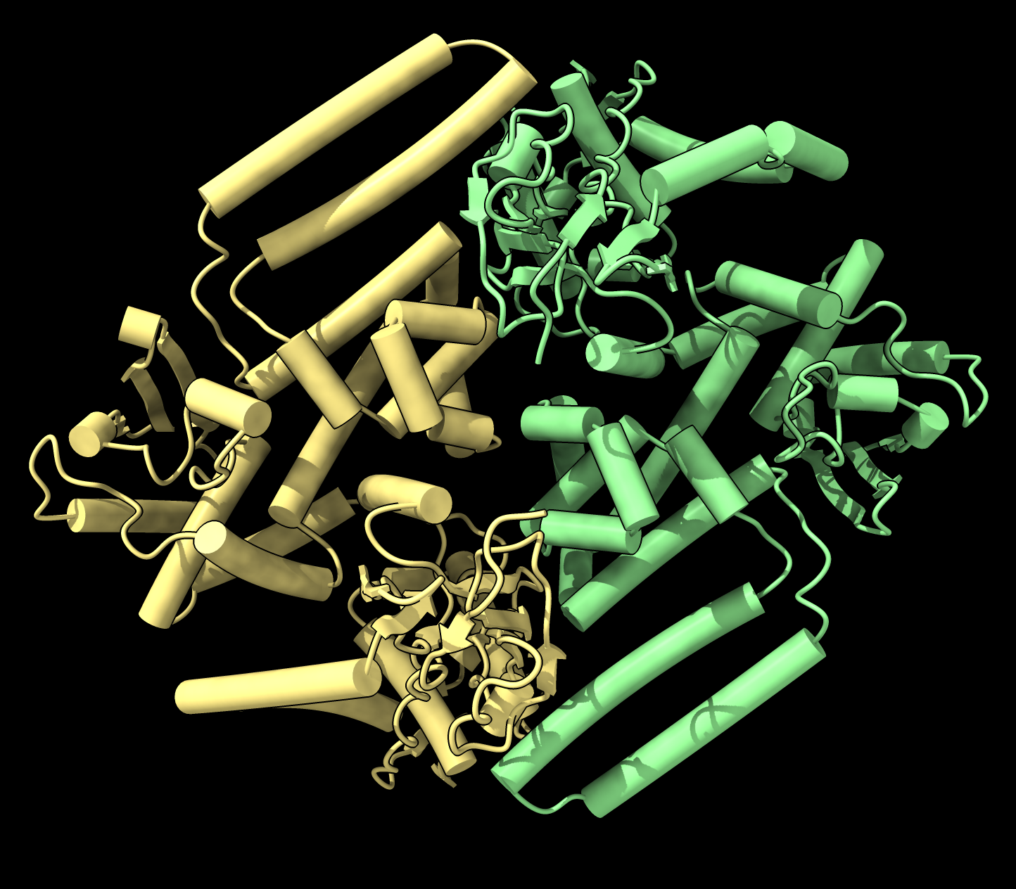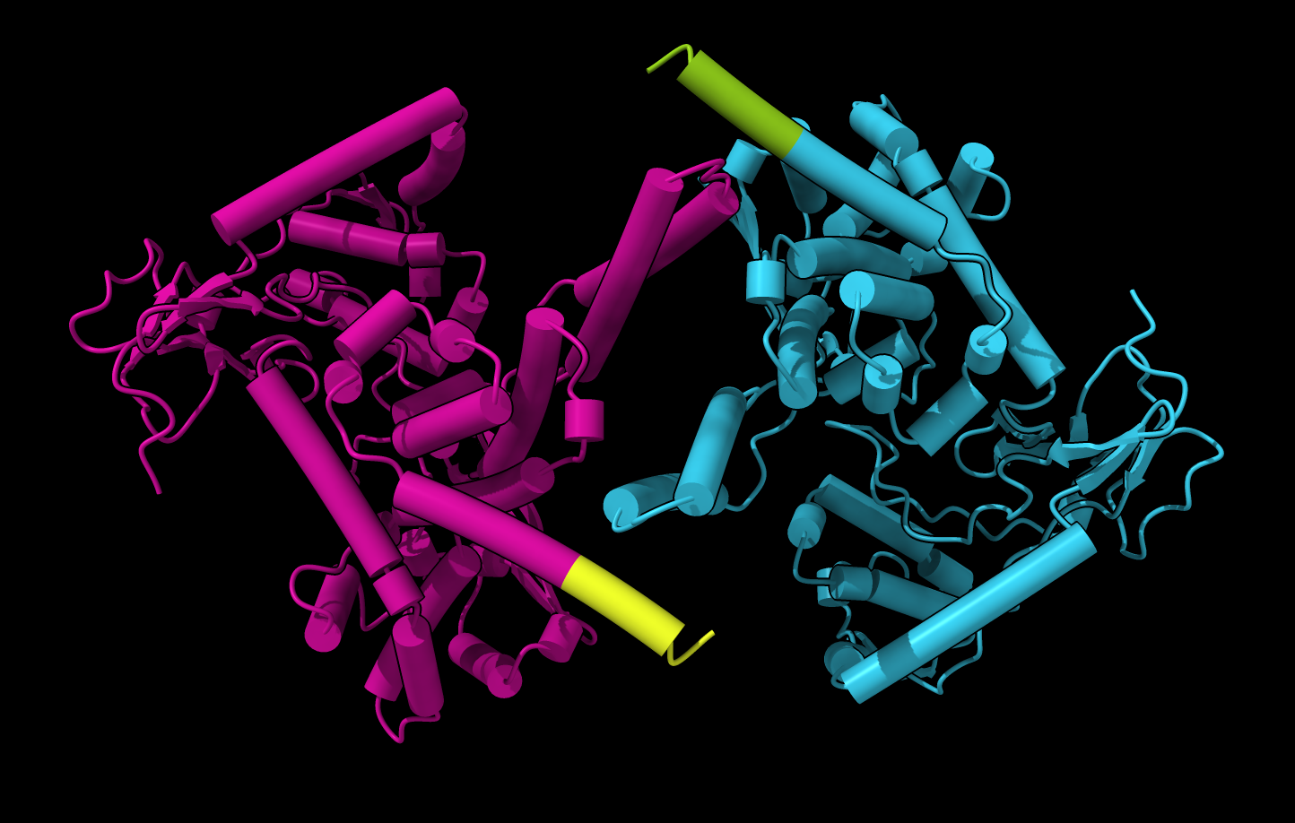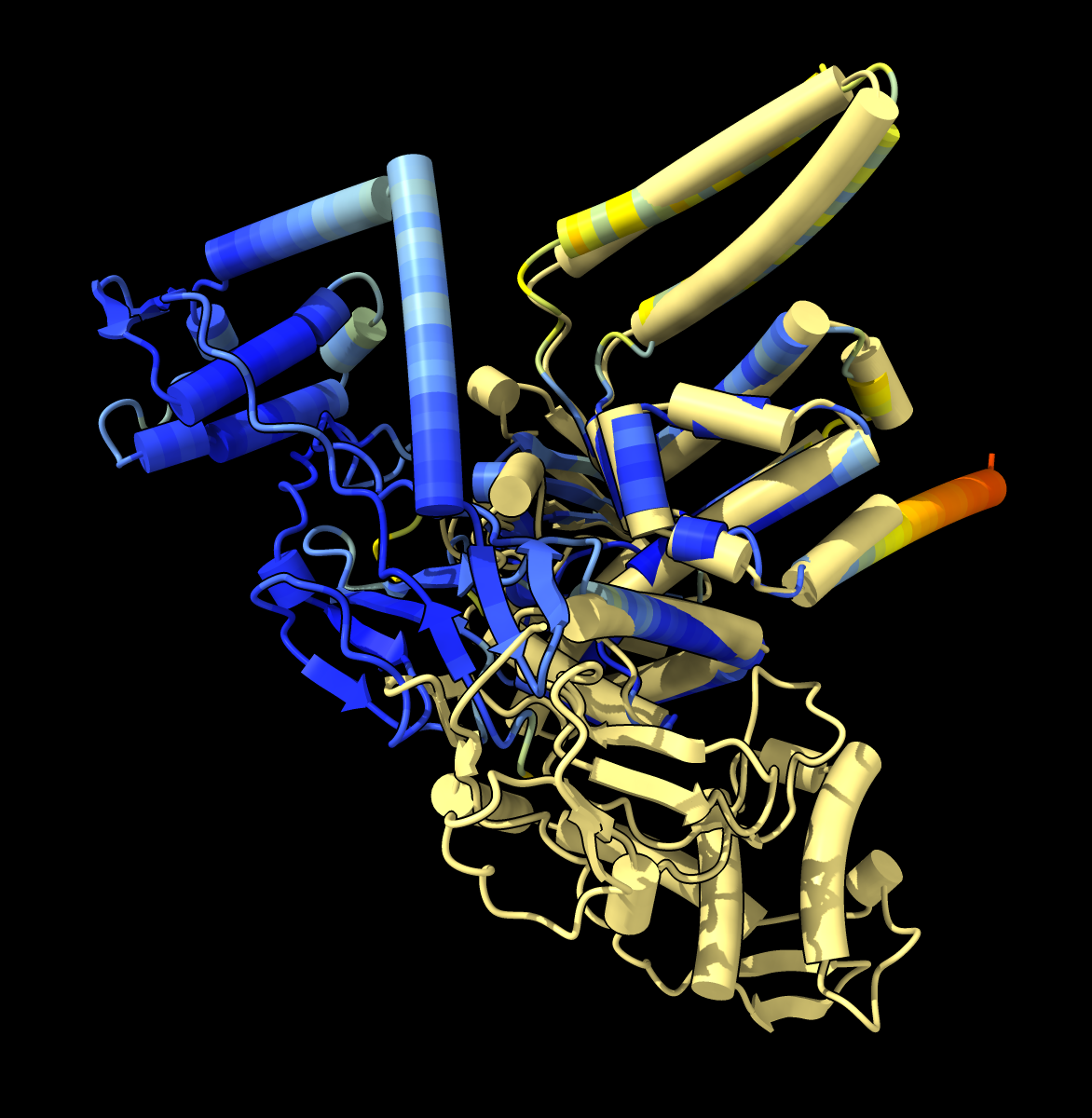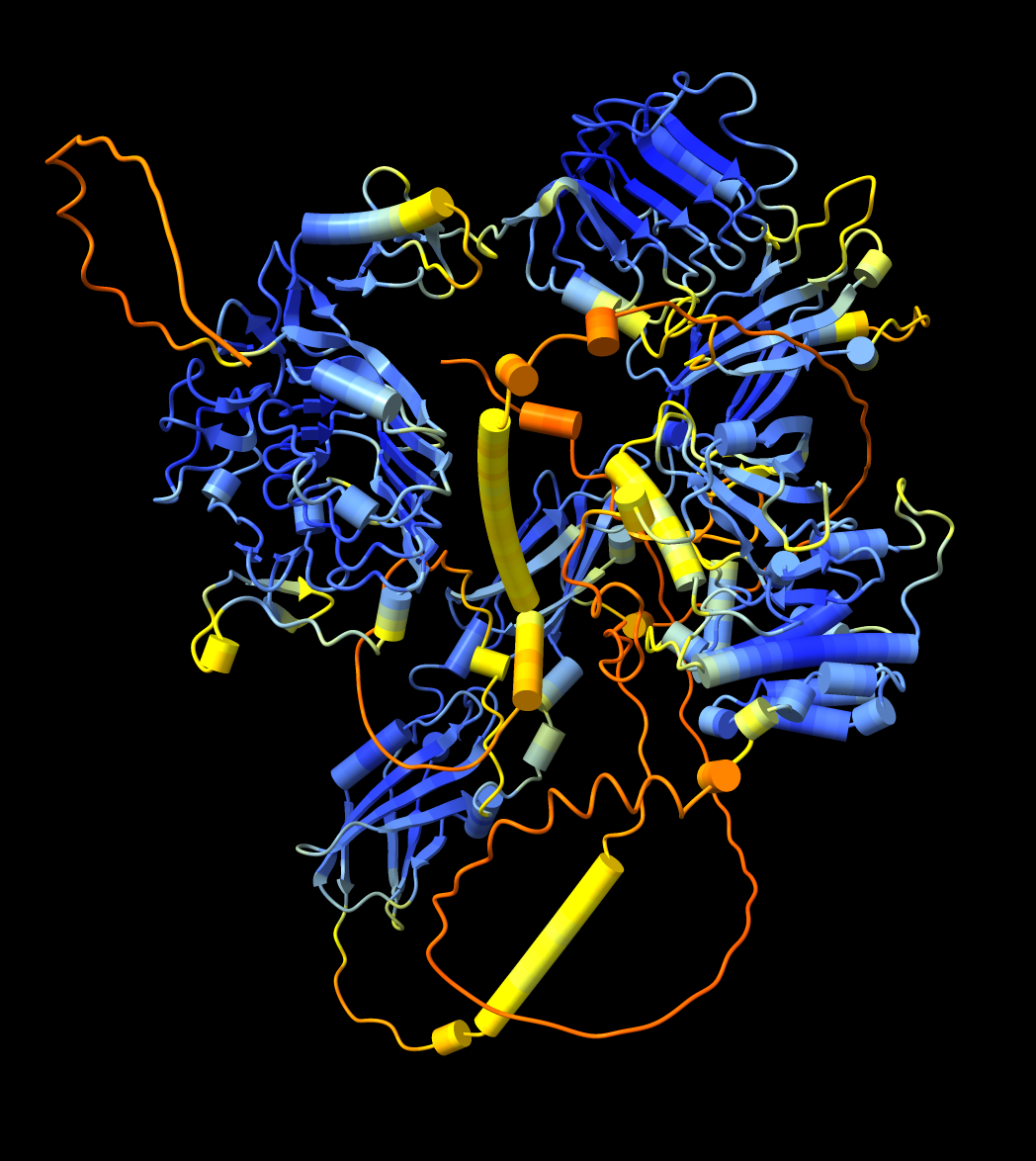 ![]() AlphaFold prediction of a DNA topoisomerase dimer. |