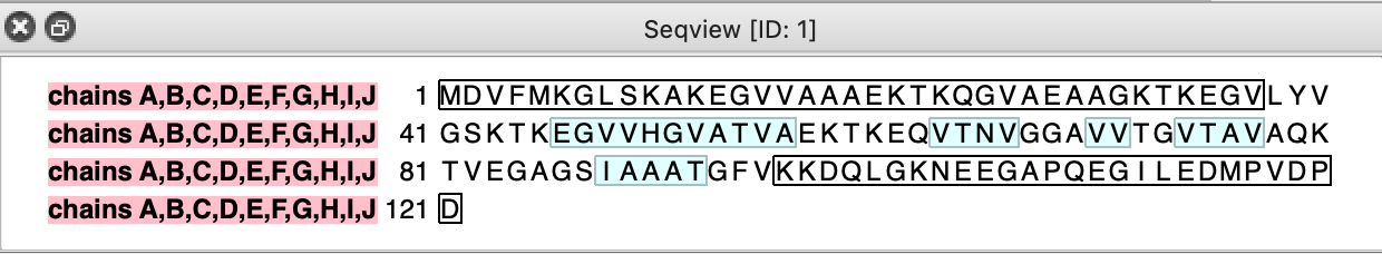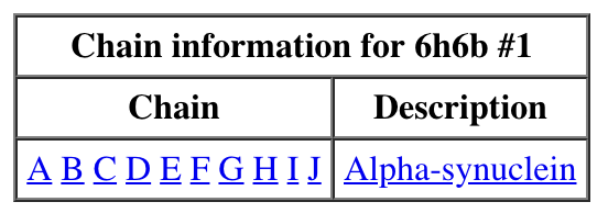 | Chain table from log. | Click alpha-synuclein link to show amino acid sequence. |