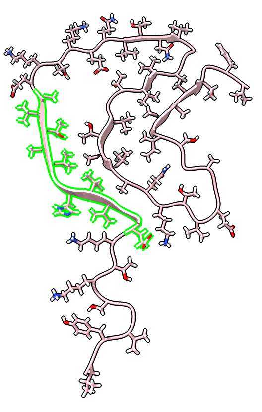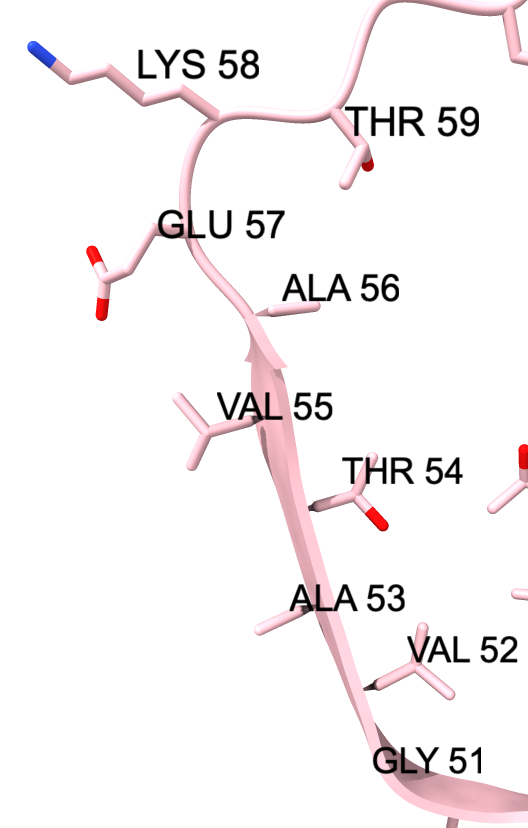 Up-arrow key to select beta strand. Ctrl-click background to clear selection. | Selection also shows on sequence view. | label /a label height 1.5 hide Hlabel delete |