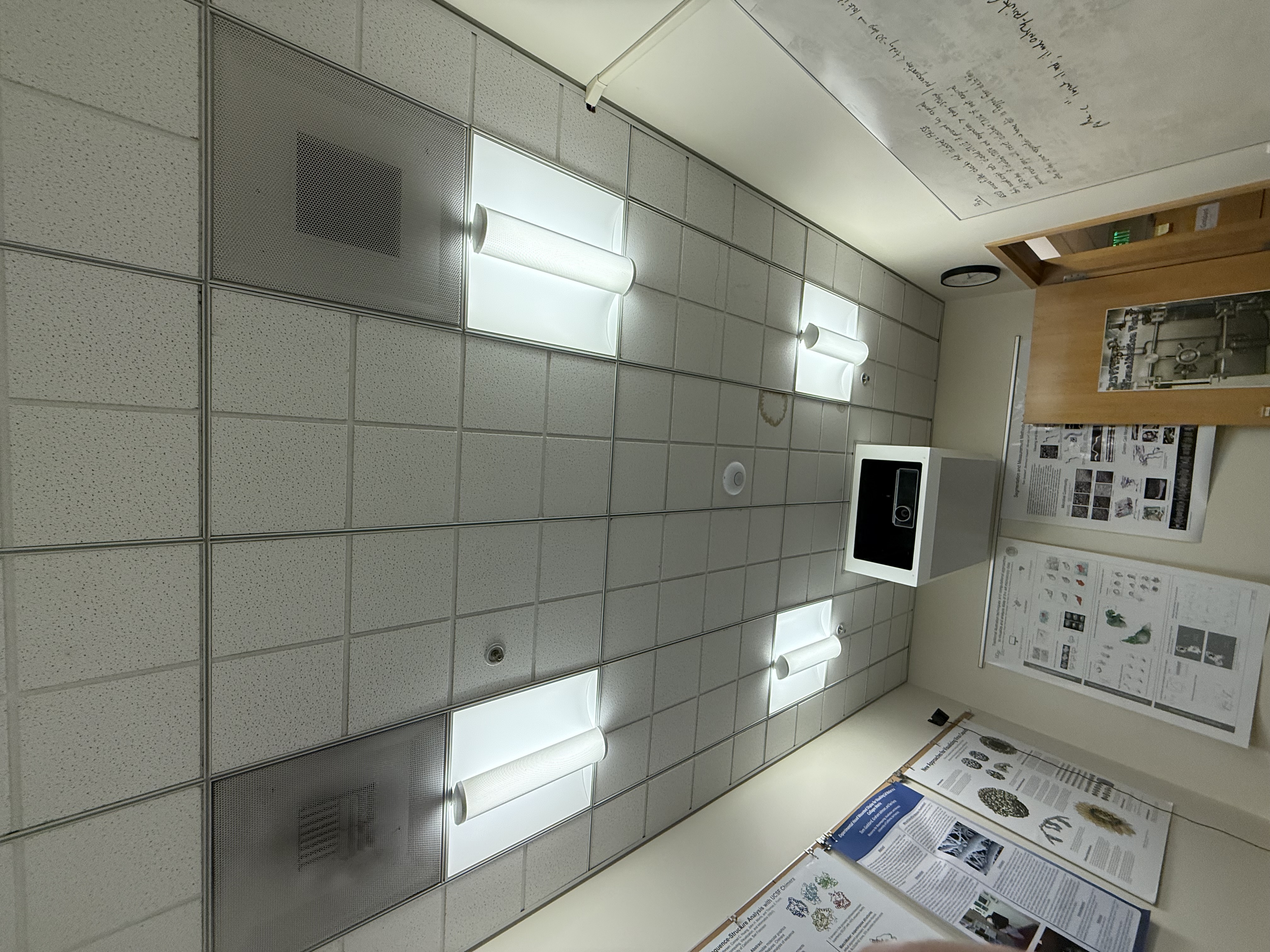 The 15.6" display is permanently mounted to a metal stand with display tilted 45 degrees up. I believe this was to improve use cases such as looking car or architectural models where it is common to view from 45 degrees above. Unfortunately this reflects ceiling mounted lights directly from the screen to the viewer's eyes. The display has anti-reflective coatings that make white lights appear purple. Dimming or turning off the ceiling lights did not work for me because the eye tracking then failed. Precariously tiling the display vertical (backed against a wall) reduced glare but placed eyes above the top of the screen looking down where the eye tracking sometimes failed. The recommended viewing angles are -40/+20 degrees vertical (using tilted orientation) although it still works looking straight at the center of the screen vertically oriented which would be +45 relative to the normal tilted position.