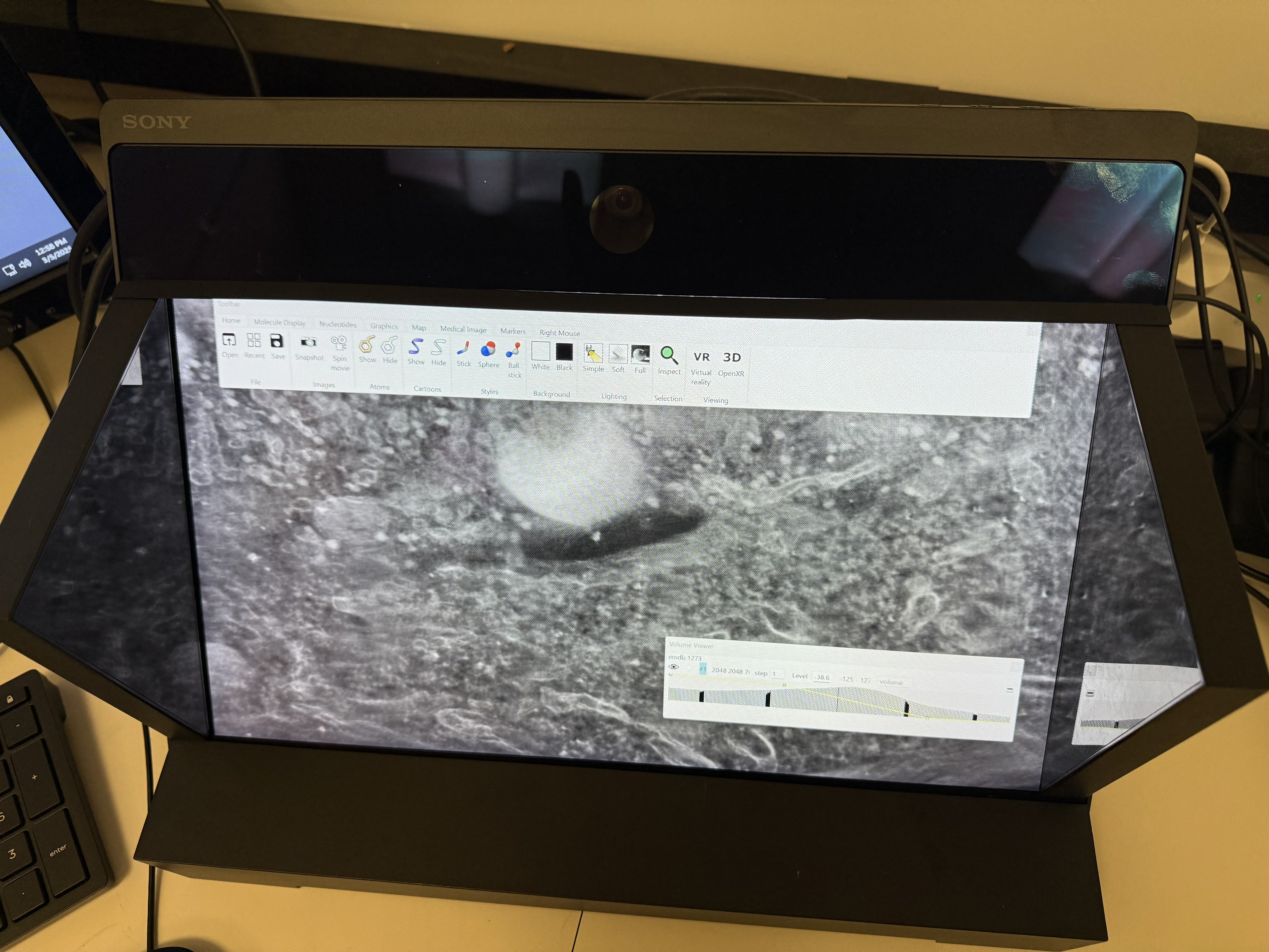 Greg Pintilie from the CryoEM and CryoET Center at the Stanford Linear Accelerator let me borrow his display to make ChimeraX work better. Greg made several points about the advantages of the Sony 3d display: