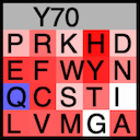 - Label with [y-score] scores – label the corresponding residue with a color-coded grid of the y-score values for all substitutions at that position; the grid can be removed with label delete