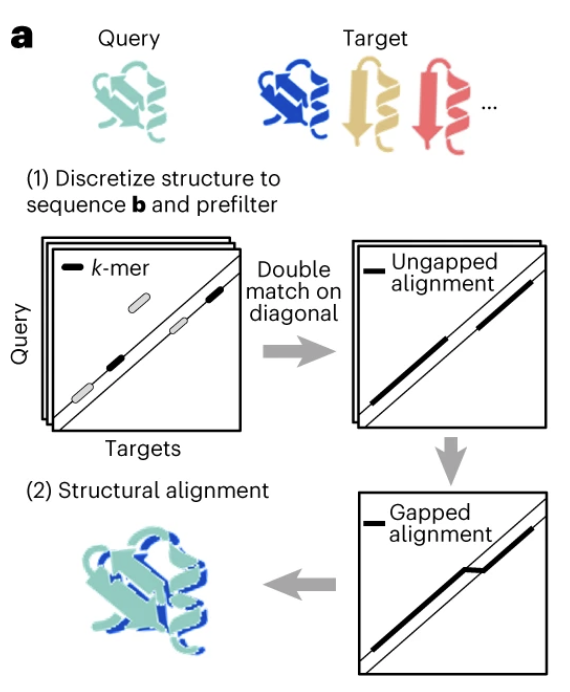 Geometricus alignment-free structure search, and MMseqs2 sequence search: