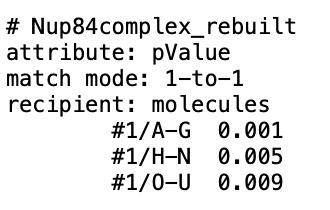 Thank you so much for this information. All of this stems from the desire to create a custom attribute, such as "pValue", and visualize an atomic model with a heat-map-like coloring of chains according to experimentally-determined numbers. In this particular case, the atomic models are of large complexes with many Chains representing the individual proteins of the complex. I originally, thought that I could use the atom-spec nomenclature to specify a range of Chains for molecule ID #1, such as #1/A-F, in a *.defattr attribute assignment file. However, since you mentioned that the setattr command will accept chains, I will instead create a complex setattr command delimited by semicolons to perform the same assignment of a custom attribute with "create true" e.g. the following setattr command and the cyan-grey-maroon palette in Render by Attribute.