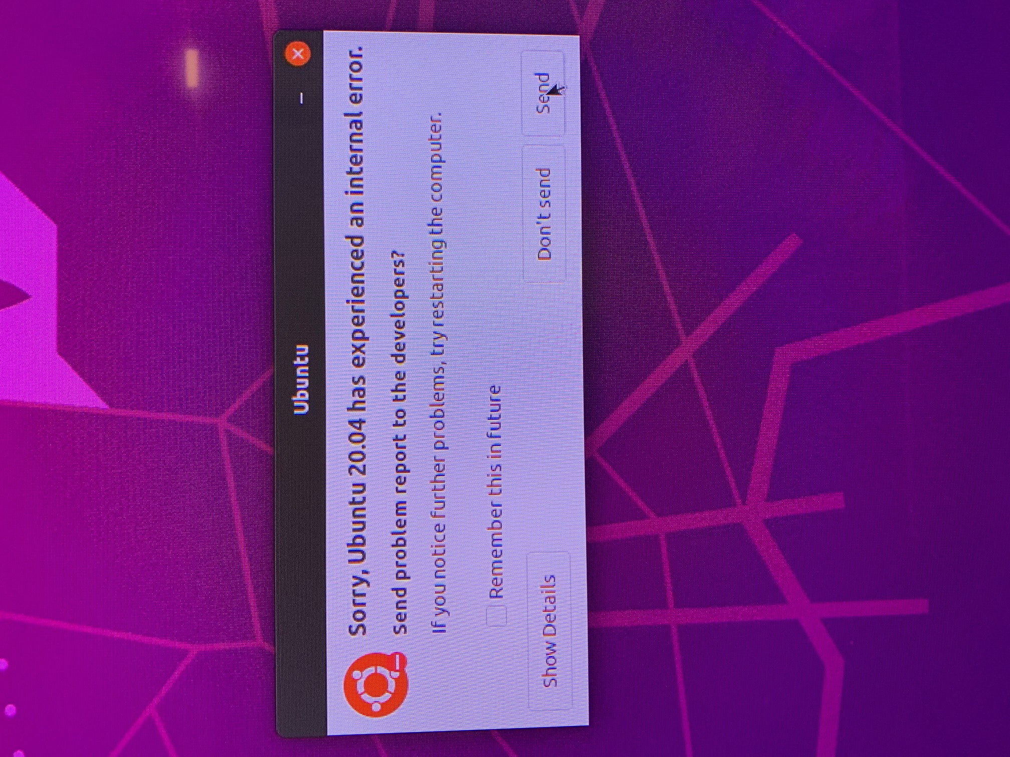 Upon restarting my workstation, I got the attached ubuntu message. But ChimeraX behavior was as described below.