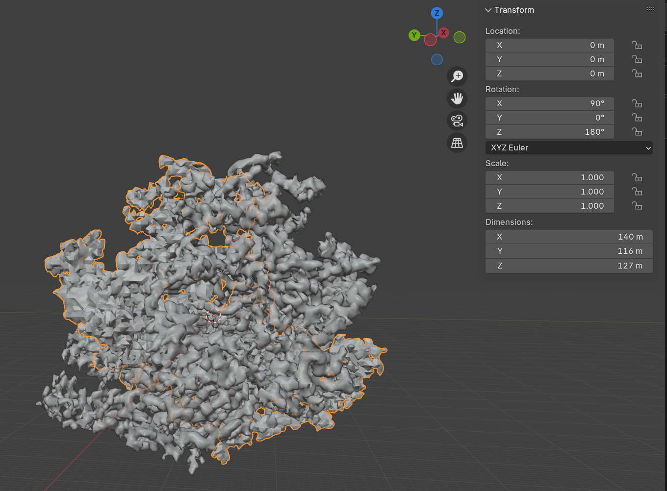 opem emdb: 36702, run the radial NIH 3D preset, then export as a GLB and a WRL. The GLB is fine, but the WRL has a cloud of vertices around it. Seems like an issue with the exporter? The output is also in a different orientation and position relative to the glb output and I'd expect them to be the same. I attached an image of a Blender scene with the WRL file highlighted with it's cloud of vertices, then the glb is underneath it.