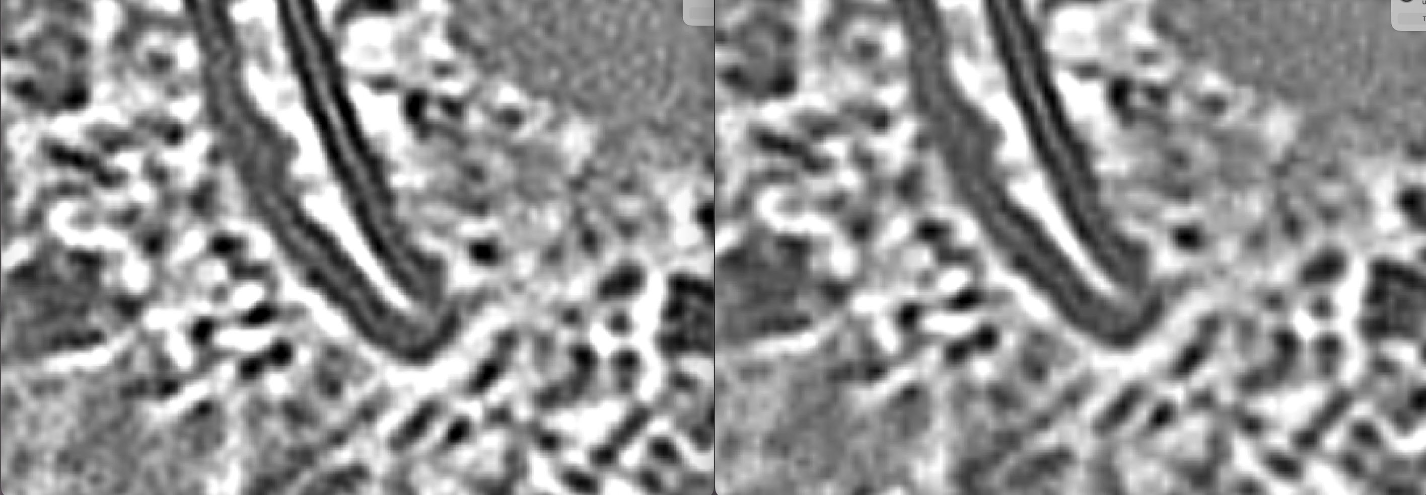Ricardo Righetto says he sees more detail in tomogram slices in 3dmod than in ChimeraX that he thinks may be because of 3dmod cubic interpolation. He provided images that suggest that the more important difference is the 3dmod auto-contrast function which makes the 3dmod image have much higher contrast.