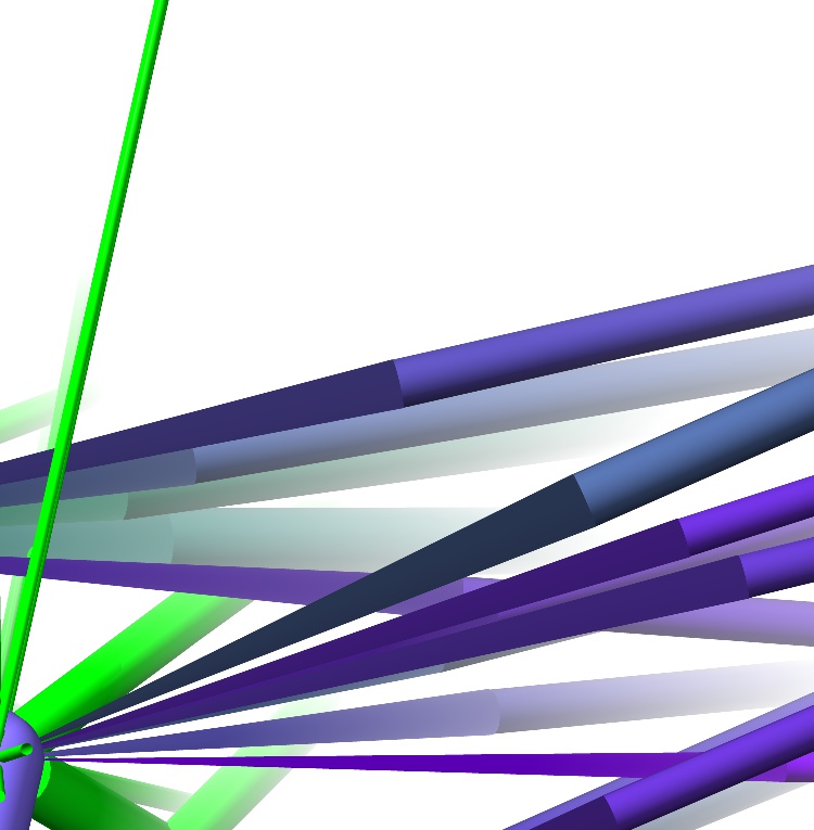 Context is a new "adaptive" distance restraint scheme (see https://twitter.com/CrollTristan/status/1113122594616741890). To represent the restraints, I'm using a cylinder (surface.shapes.cylinder_geometry()) for the target distance, connected at each end to the restrained atoms with cones (surface.shapes.cone_geometry()). Zooming in on a set of stretched restraints, the cone normals are all wrong (see attached picture). Looks to me like they're being transformed in the same way as the vertices themselves, which is only correct when the transformation is strictly rotation/scale or when there is no skew component parallel to the normal. From what I gather, the generally correct transformation for normals is the transpose of the inverse of the vertex transform. I can see it would be a horrible waste of resources to use that everywhere, but would it be possible to provide an optional switch on Drawing to turn on the strict treatment?