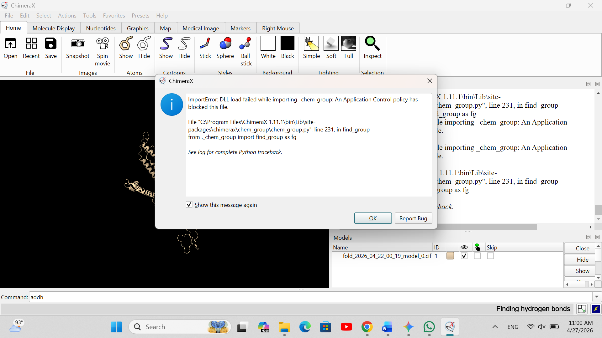 | Summary: | ChimeraX bug report submission → DLL load failed: An Application Control policy has blocked this file |